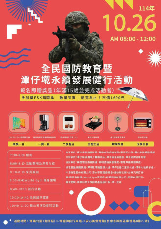 全民國防教育結合永續理念 潭仔墘健行活動10月26日登場 —軍民同心、健行護家園,打造永續社區新典範