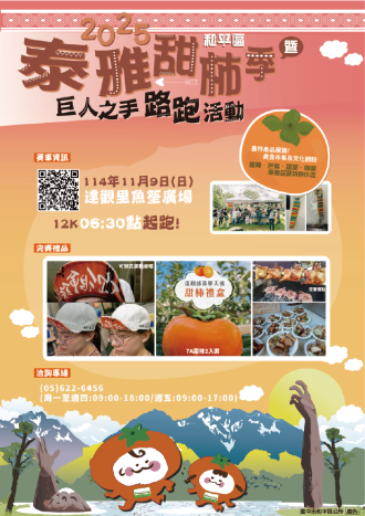 2025泰雅甜柿季暨巨人之手路跑活動,亦可得知活動訊息,歡迎民眾前來參加活動。